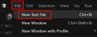 「File」→「New Text File」をクリックしファイルを作成しctrl + sで保存します。