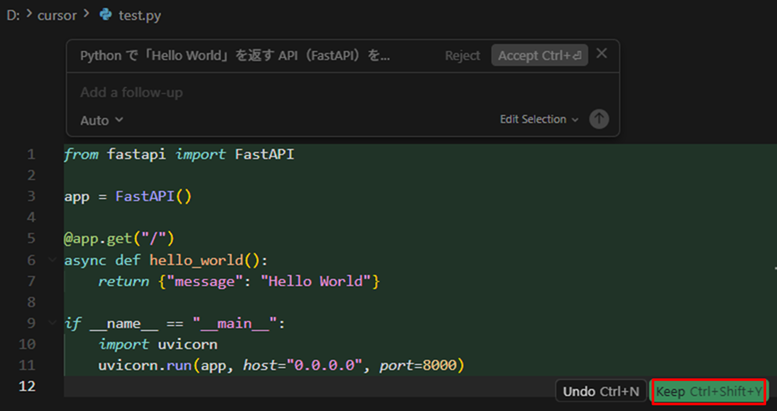 Python で「Hello World」を返す API(FastAPI)を作ってください
