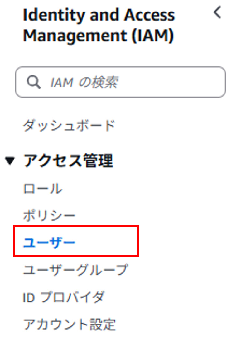 →ルートユーザは通常使用せず、IAMユーザーを作成して作業を行います。 - IAMは、Identity and Access Managementの略です。