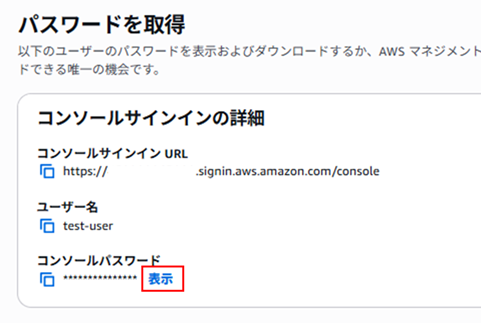 「コンソールパスワード」の横の表示を押すとパスワードが表示されます。