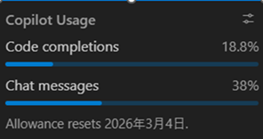 2.GitHub Copilotの月間利用枠の消費率が表示されます。