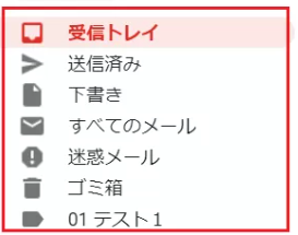 ラベルは、画面左側にあります。最初から「受信トレイ」や「送信済み」などがあります。