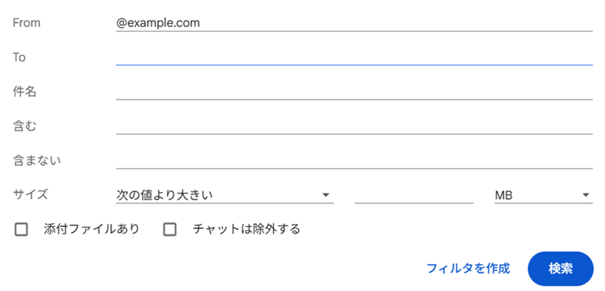 「フィルタを作成」ボタンを押すとフィルタが作成されます。